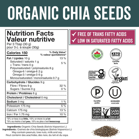 Viva Naturals Organic Chia Seeds 2 LBs - Plant-Based Omega-3 and Vegan Protein, Non-GMO Organic Chia Seeds - Black Chia Seeds Bulk