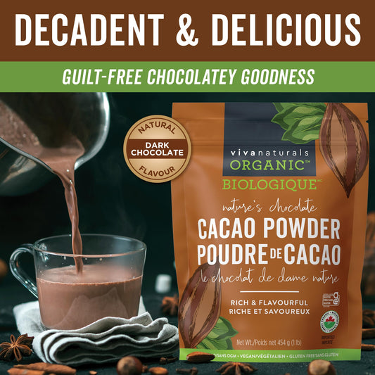 Viva Naturals Organic Cacao Powder, 1lb - Unsweetened Cocoa Powder w/ Rich Dark Chocolate Flavour - Certified Vegan, Keto & Paleo, Gluten-Free & Non-GMO, 454g (Pack of 1)