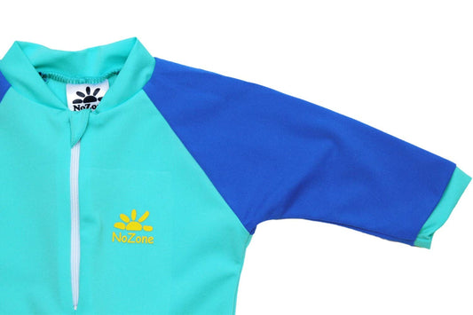 Nozone Fiji Sun Protective Baby Swimsuit, Double Zipper, UPF 50+ 6-12 Months Aquatic/Blue