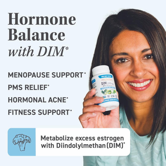 DIM Supplement 200 mg | Estrogen Balance for Women & Men, Vegan, Soy-Free | 60 Pills